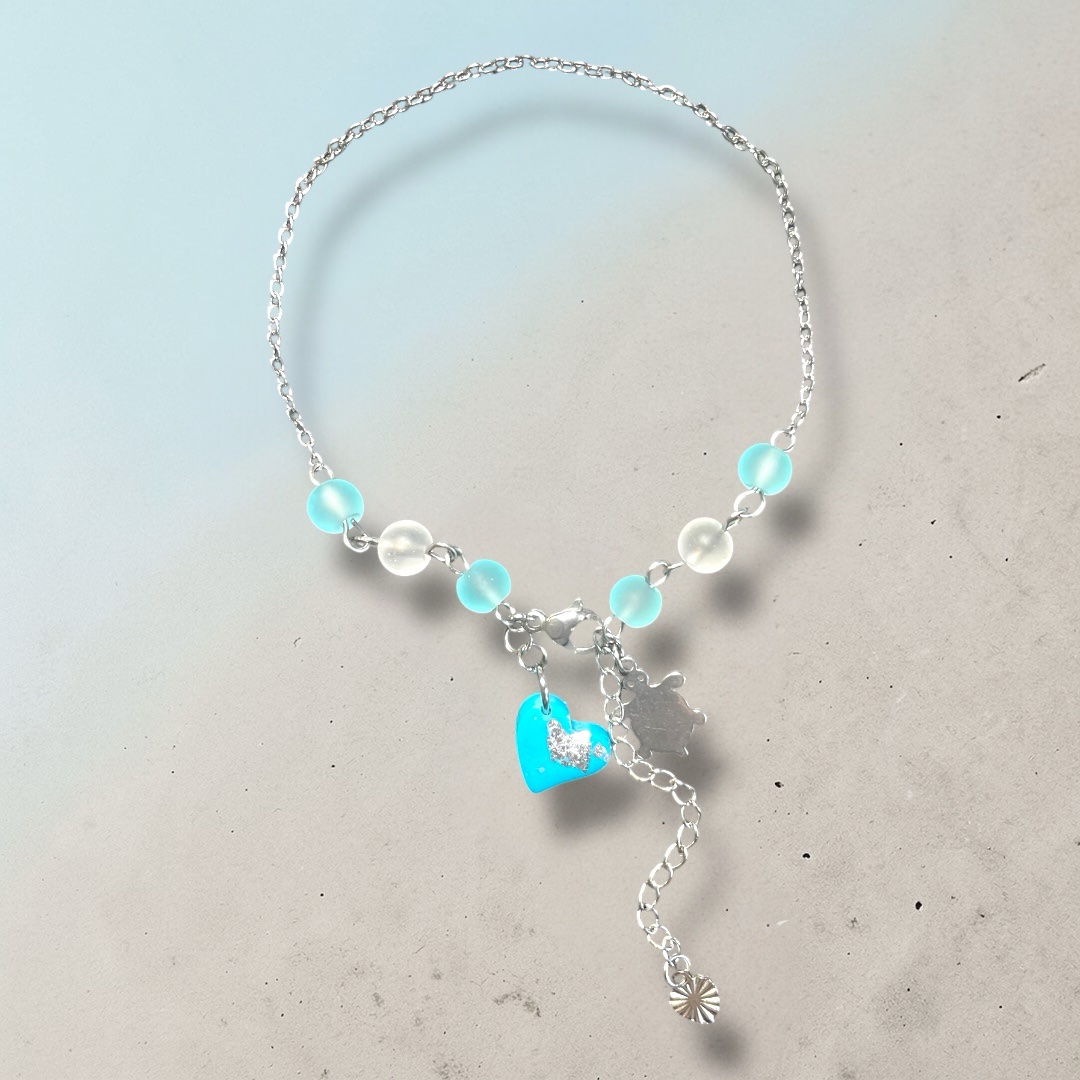 Materiaalit: Teräs, lasihelmet, käsin tehty fimo sydän
